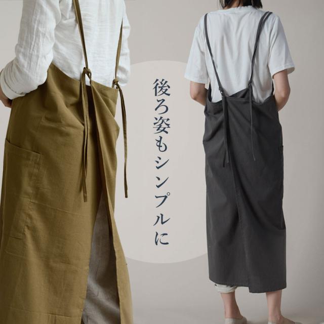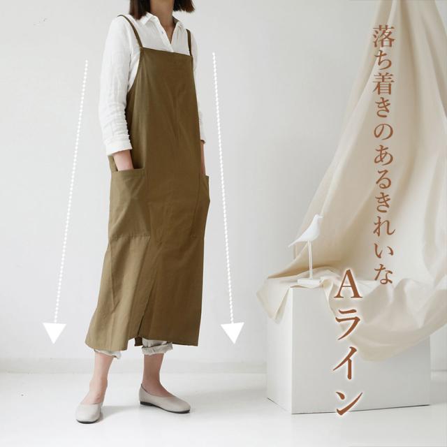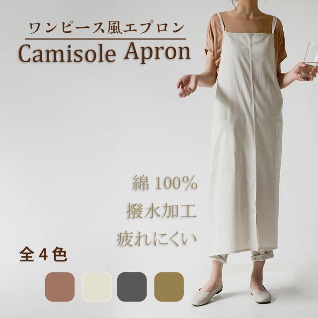 エプロン おしゃれ ワンピース 4色選べる 北欧 かわいい ナチュラル カフェ 無地 シンプル 大人レディース キャミソール フリーサイズ 体型カバー 撥水加工 家事エプロン お尻が隠れる
