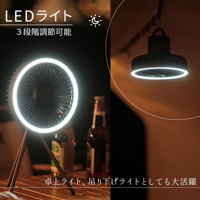 扇風機 卓上 LEDライト付き 2カラー 充電式 三脚 カラビナ付き コードレス扇風機 静音 冷風機 USB扇風機 強力 小型扇風機 3段階風量 携帯扇風機 コンパクト ハンディ扇風機 ミニ
