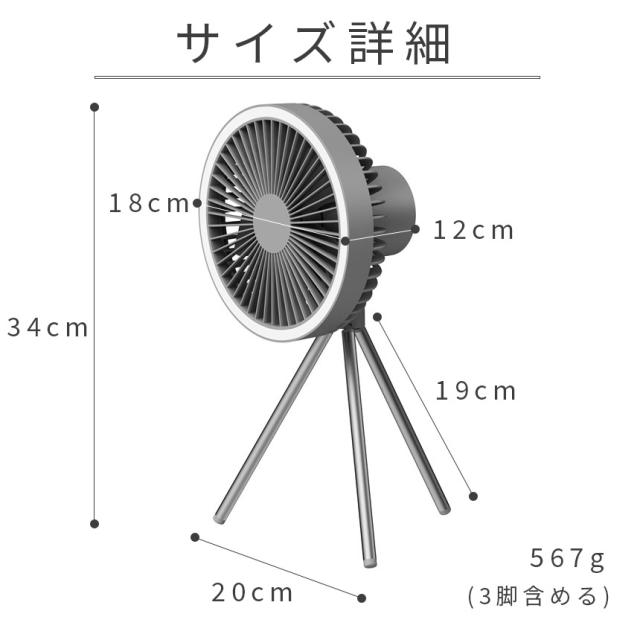 扇風機のカバー部分:約18cm、約567g(本体、三脚含む)