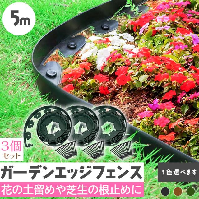 ガーデンエッジ フェンス 5m 3個セット 高さ5cm 3カラー ブラック ブラウン グリーン 花壇 土留め 芝生 根止め 仕切り 柵 園芸 ガーデニング diy 簡単設置 施工 自由自在 耐久性