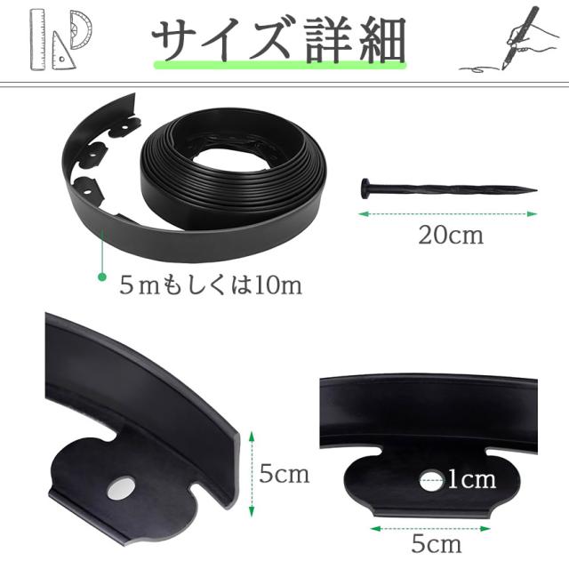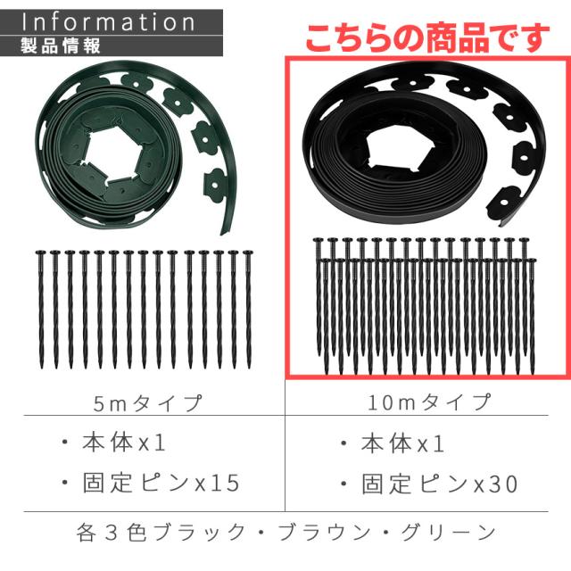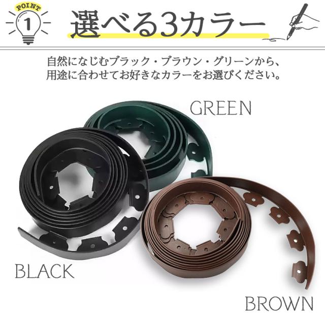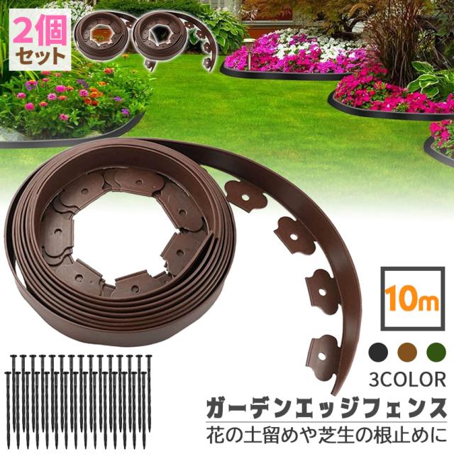 ガーデンエッジ フェンス 10m 2個セット 高さ5cm 3カラー ブラック ブラウン グリーン 花壇 土留め 芝生 根止め 仕切り 柵 園芸 ガーデニング diy 簡単設置 施工 自由自在 耐久性