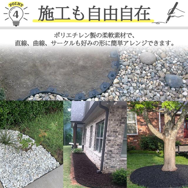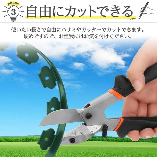 【好きな形で施工できるガーデンフェンス】高さ5cmで、固定ピンでとめるだけの簡単設置できるガーデンエッジフェンスです。花壇の土留め、芝生の根止め等に役立ちます。また、植え込みの柵や砂利の仕切りなど、ガーデンニングにも最適♪しっかり固定でき、自由に形が作れて、カットもできるので、必土漏れも軽減することができ、機能的かつおしゃれに使えます。