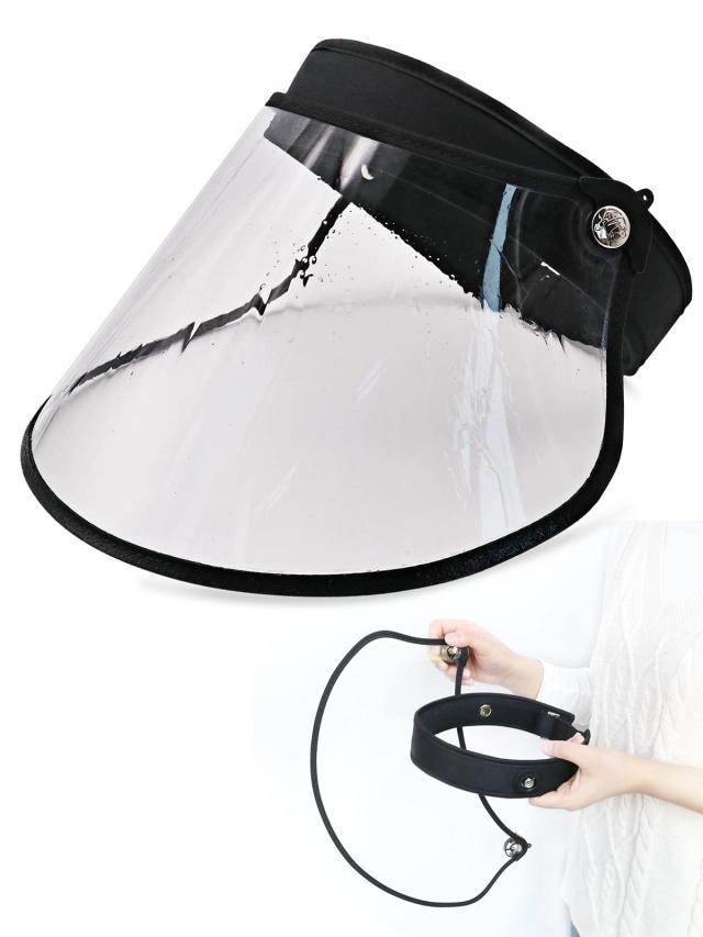 レインバイザー 薄くなる 曇らない 水滴付かず レインハット 自転車 雨 レイン 帽子 クリアバイザー 雨対策 UPF50+ レインばいざー レディース 透明 uvカット 花粉 バイザー ずれない レインコート 雨用サンバイザー フリーサイズ ■【商品説明】 こちらは、雨対策にピッタリなアイテムレインバイザーです。雨の日、視界を守り、顔が濡れにくくメイク崩れも防ぎます。UV加工で晴れの日の紫外線も防いでくれるので、普段のお出かけにも使えるマルチなバイザーです。レインウェアと組み合わせれば、雨の日の自転車や、アウトドア・レジャー、通勤通学など幅広い用途で使用可能です。安価な製品では綺麗に剥がせないとの声が多い保護シールですが、当製品はシールが簡単にキレイにはがせます。お仕事の梅雨シーズンの雨対策などでも活躍間違いなしです! 【薄くなるクリアバイザー】 本体からつばを取り外せば平らになるので、小さなバッグ(A4サイズ相当)やトートにも収納可能、手荷物としてかさばらない、持ち運びにとっても便利! ※商品によってボタンが固い場合があります。不良ではございませんので。 ※固い場合の付け方と外し方をご参考ください。 【ボタンが固い場合】 付け方:手の平でボタンを挟み、回すようにはめ込んでください。 外し方:突起部分に指を入れて、本体とバイザーを両方引っ張ってください。 ■【両面防曇加工】 息で白く曇ることを防ぐ、バイザーの両面に曇り止め加工処理を施しているため、快適な視界を確保できます。