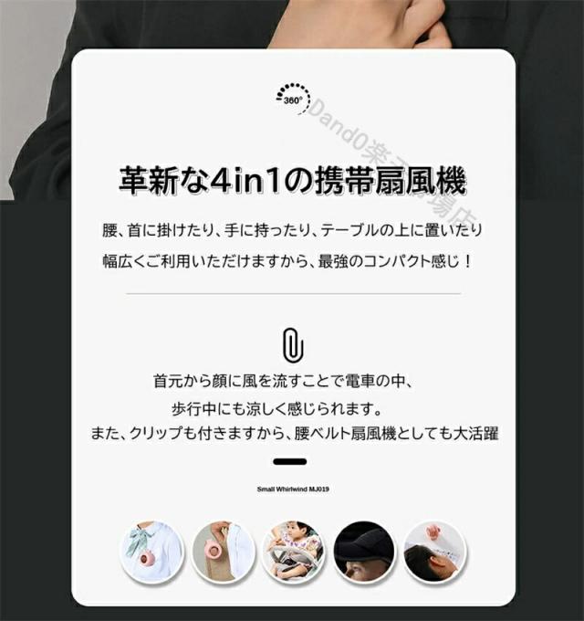 【超軽量&小型&静音設計】2023最新改良、いつでもどこでも、持つ必要がないので、手が自由になり快適に使用できます。90gだけの超軽量により首への負担はほとんどないです。低騒音設計で、オフィスなど静かな環境でもストレスなく快適に使用でき、静かで優しい風を感じながら、より仕事や勉強に集中できます。