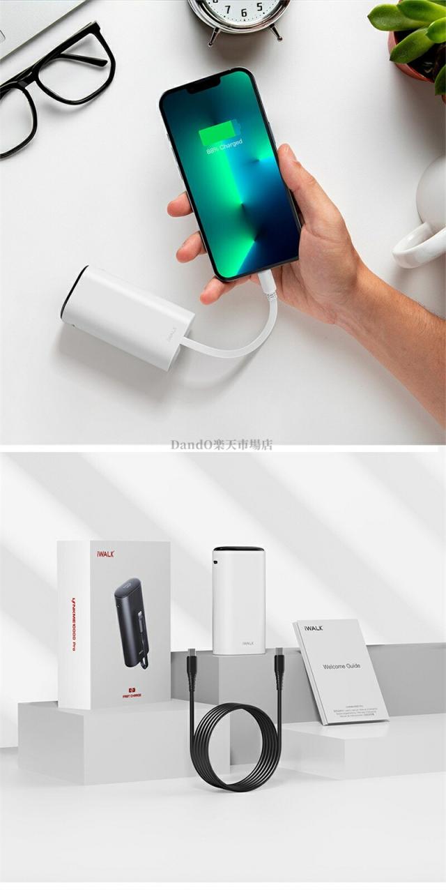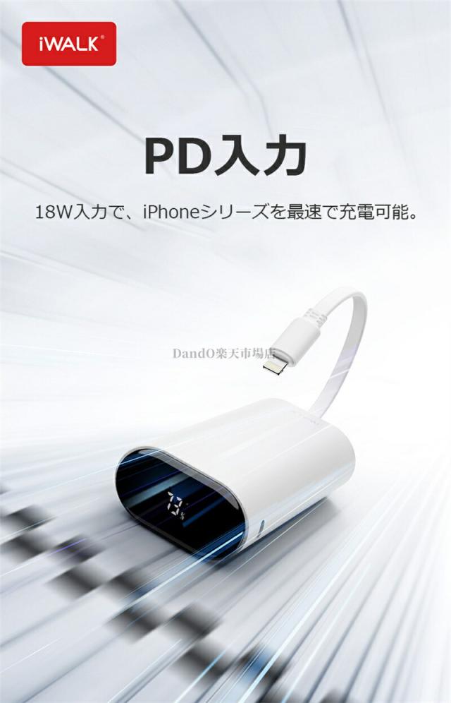 もっと長いLightningケーブル内蔵:iPhone専用Lightningケーブル内蔵、差し込むだけで充電できる。専用ケーブルを持ち歩く必要がなく、ケーブルを忘れたときも充電ができないなんて心配はない。