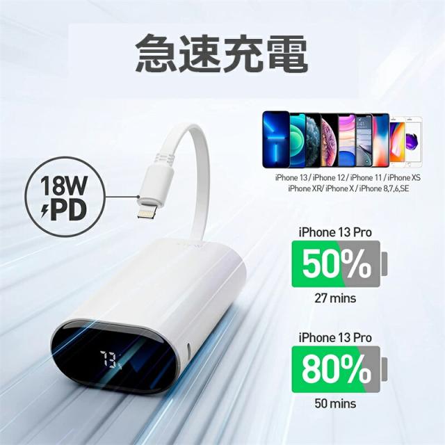 アップグレード急速充電出力:コンパクトで小型のモバイルバッテリーは18W PD出力をサポート、iPhone 14 Proを30分で最大56%充電可能、楽しい時間をさらにもっと長くすることができる。