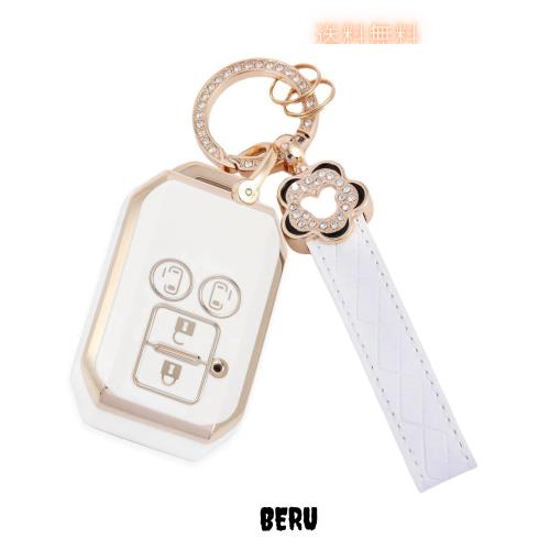 【Nacalikeey】キーケース適合ホンダ NシリーズNBOXカスタム N-VAN JF1 JF2 JF3 JF4梅の花キーケース適合ホンダ N-BOX NBOX N-ONE N-WGN N-ワゴン スマートさくらかわいいのキーケース(4ボタン,ホワイト)