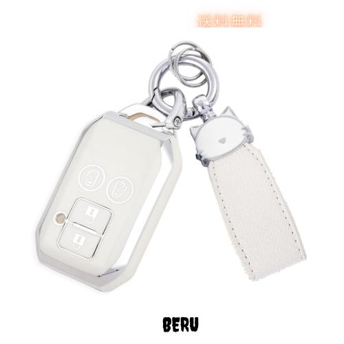 ◆商品名:[ZANEKO] キーケース適合スズキ新型スペーシアキーカバー スペーシアカスタム ソリオ フレアワゴン スマートキーケース 猫 (シルバーホワ