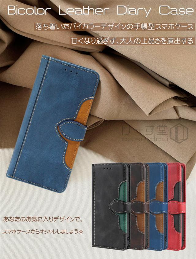 ■商品名:落ち着いたバイカラーデザインの手帳型ケース