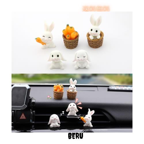 【目を引く兎】姿勢の異なるウサギとニンジンのオーナメント5個、色々な組み合わせができます。自分の車に合うポーズを模索するのも楽しいです。