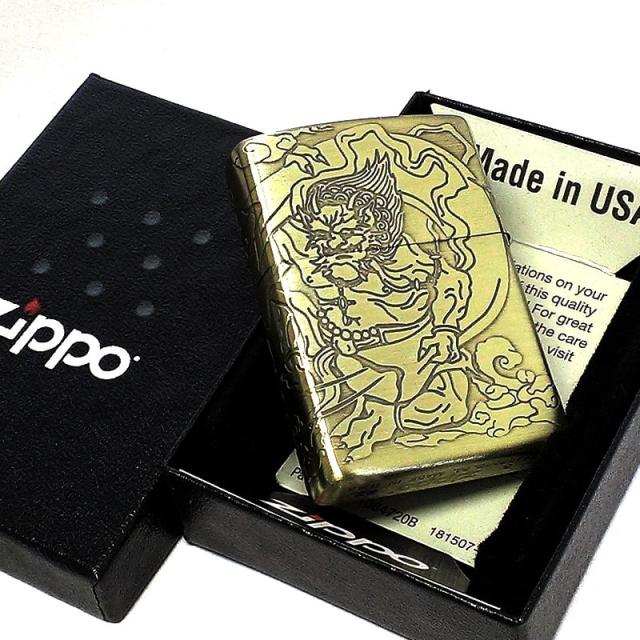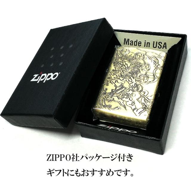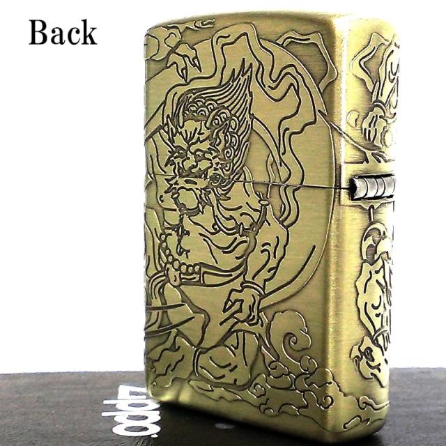ZIPPO 風神雷神 ジッポ ライター 4面連続彫刻 アンティークブラス お守り 真鍮古美 神様 かっこいい 和柄 ゴールド 渋い メンズ プレゼント ギフト 動画有り