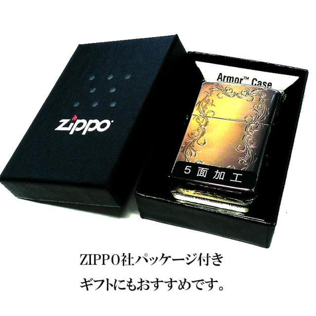 ZIPPO アーマー アラベスク 5面彫刻 ジッポ ライター ゴールド燻し アンティーク お洒落 深彫り 重厚 高級 ギフト かっこいい ジッポー