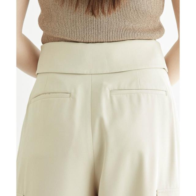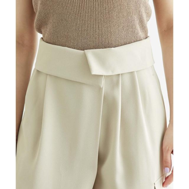 ・ウエストの折り返しデザインが特徴的なタックパンツ。