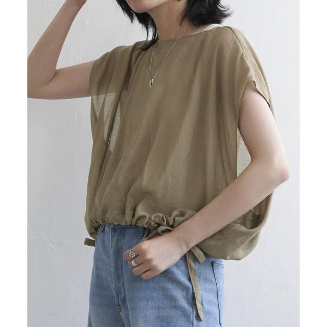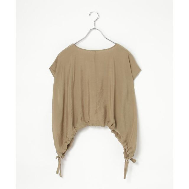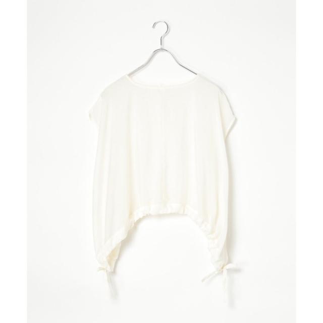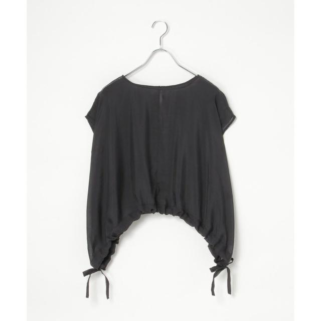 裾にドロストできるリボンをあしらったブラウス。