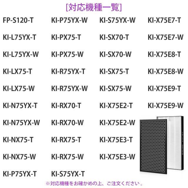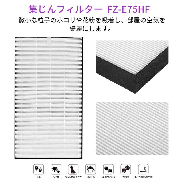 【集じん・HEPA機能】花粉、カビ菌、PM2.5、ホコリ・チリ、アレル物質(ダニのふん・死がい)、タバコの煙(粒子)、ペットの毛などを捕集します。集じんできる静電HEPA?フィルター 10,000 個の微小な粒子を吸い込んで3 個しか通さない高性能のフィルター。さらに、静電気を帯びているため目詰まりしにくいのが特徴です。 【脱臭機能】料理臭、ペット臭、部屋干し衣類の生乾き臭、体臭、加齢臭などを消臭できます。フィルターはニオイの強力分解、脱臭に加え、リビングなどに侵入した排気ガスなどに含まれる有害成分を低減します。 【交換目安】約3~5年。使用時間や設置場所により交換時期は異なります。期間内であっても汚れや水垢が落ちなくなったり、傷みや型崩れがひどいときは交換してください。 【ご注意】本品は消耗品です。使用環境によりフィルターの寿命が変化するため注意が必要です。汚れが目立ち効果が落ちているようでしたら、速やかに交換することをおすすめいたします。 FZ-E75HF と FZ-F70DF空気清浄機 フィルターセット対応機種: FP-S120-T KI-L75YX-T KI-L75YX-W KI-LX75-T KI-LX75-W KI-N75YX-T KI-N75YX-W KI-NX75-T KI-NX75-W KI-P75YX-T KI-P75YX-W KI-PX75-T KI-PX75-W KI-R75YX-T KI-R75YX-W KI-RX70-T KI-RX70-W KI-RX75-T KI-RX75-W KI-S75YX-T KI-S75YX-W KI-SX70-T KI-SX70-W KI-SX75-T KI-SX75-W KI-X75E2-T KI-X75E2-W KI-X75E3-T KI-X75E3-W KI-X75E7-T KI-X75E7-W KI-X75E8-T KI-X75E8-W KI-X75E9-T KI-X75E9-W ※ご購入の前にご希望商品の対応機種一覧より、適合商品である事をご確認願います。 ※購入検討商品に関してご不明な点やご不安をお持ちのお客様は、ご購入前にお問い合わせください。 |
