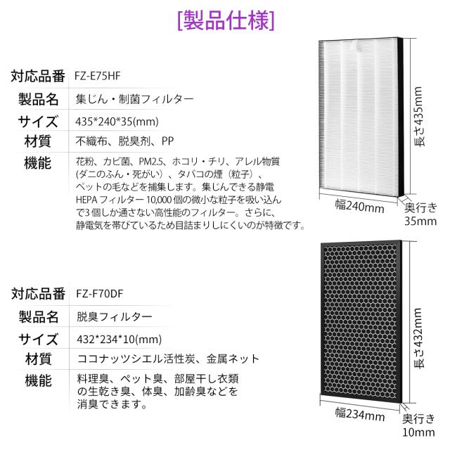 FZ-E75HF FZ-F70DF 加湿空気清浄機 フィルター シャープ空気清浄機 交換用 集じんフィルター fz-e75hf 脱臭フィルター fz-f70df 集塵・脱臭フィルターセット【2枚セット/互換品】