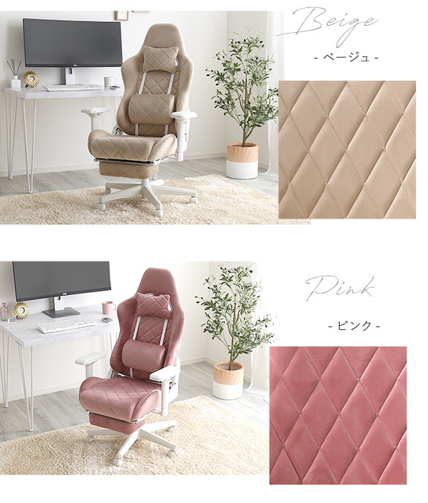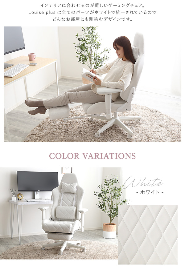 ゲーミングチェア ベージュ 全3色 ハイバックシート オットマン付き 首と腰用クッション付 最大155度までリクライニング 昇降式 大人かわいい くすみカラー Louise plus