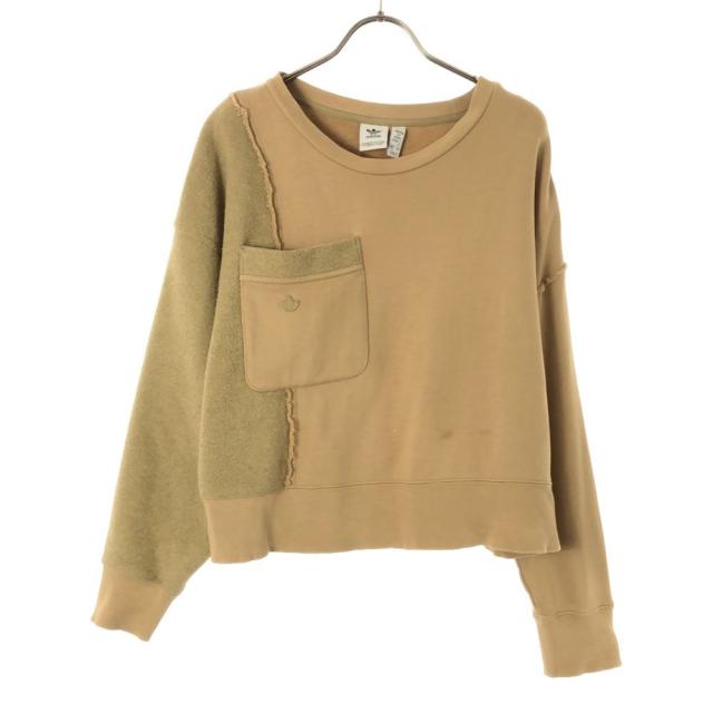 アディダス ロゴワッペン 長袖 ショート丈 スウェット トレーナー M ベージュ adidas トレフォイルロゴ タオル地 ショート丈 レディース