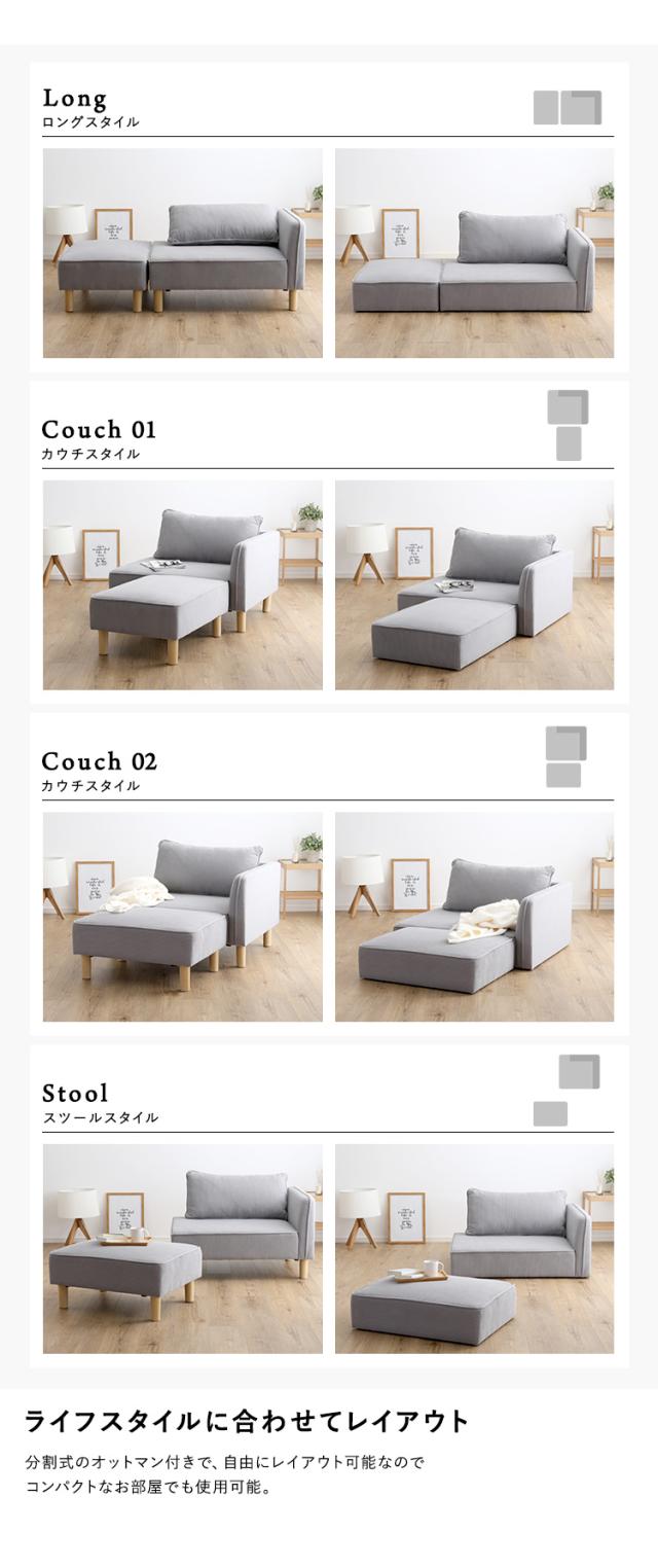 分割できるオットマンのセットで、お部屋のサイズやライフスタイルに合わせてレイアウト可能です。