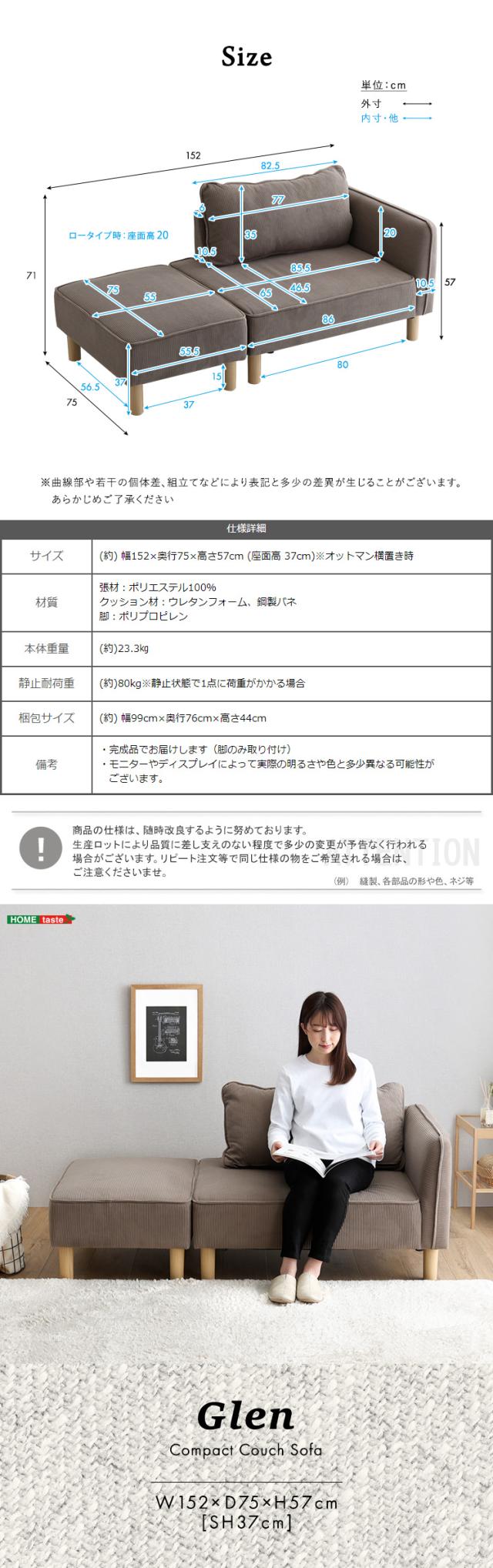 (約)W152×D75×H57cm(SH:37cm)※オットマン横置き時