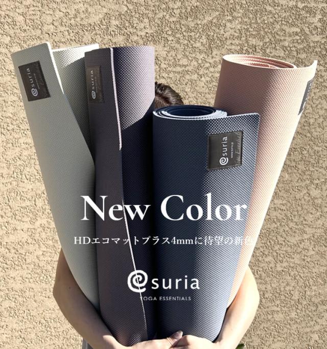 suria スリア ヨガグッズ HDエコマットプラス 4mm 地球環境にやさしい定番ヨガマット エコロジー派にうれしい地球環境に優しい素材「TPE」を使用したヨガマット。使用されるフォームは、発泡率にもこだわった高密度なスリアオリジナル。 従来のTPE使用マットにはない、コシのあるしっかりとしたクッション性が得られます。また、接着剤を使用しない製造方法により、マット特有のにおいを大幅カット! コシのあるしっかりとしたクッション性で、リストラティブヨガ、ハタヨガ、などのリラックスヨガからホットヨガ、アクティブに動くアシュタンガヨガなどにもおすすめです。