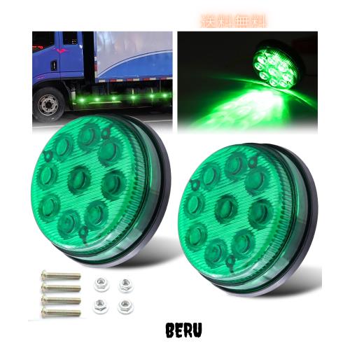 LED トラック サイドマーカーランプ 路肩灯 車幅灯 24V 12V 9連LED 側灯 トラック トレーラー デコトラ 高輝度 防水 緑色光(ハイライトとローライト)丸型 2個セット
