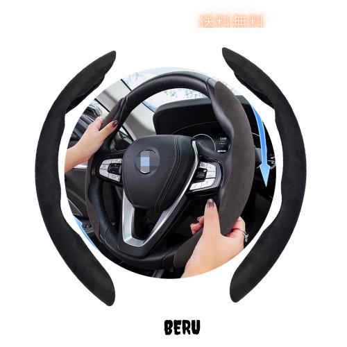 ハンドルカバー 車用 ステアリングカバー ハンドル ハンド 保護カバー カーボンファイバー スエード調生地 超薄型 滑り防止 円型とD型ハンドル オールシーズン対応 取付簡単 (ブラック)