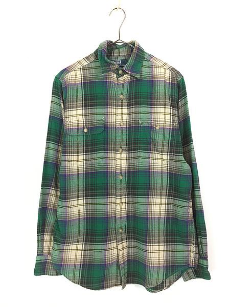 古着 Polo Ralph Lauren チェック ワーク フランネル シャツ ネルシャツ S 古着