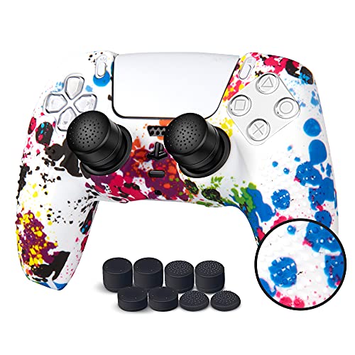 JYXETOV PS5ハンドルコントローラーシリコン保護カバーと+収納バッグ(27オプション)。無料の8ボタンキャップ。オリジナル充電器、滑り