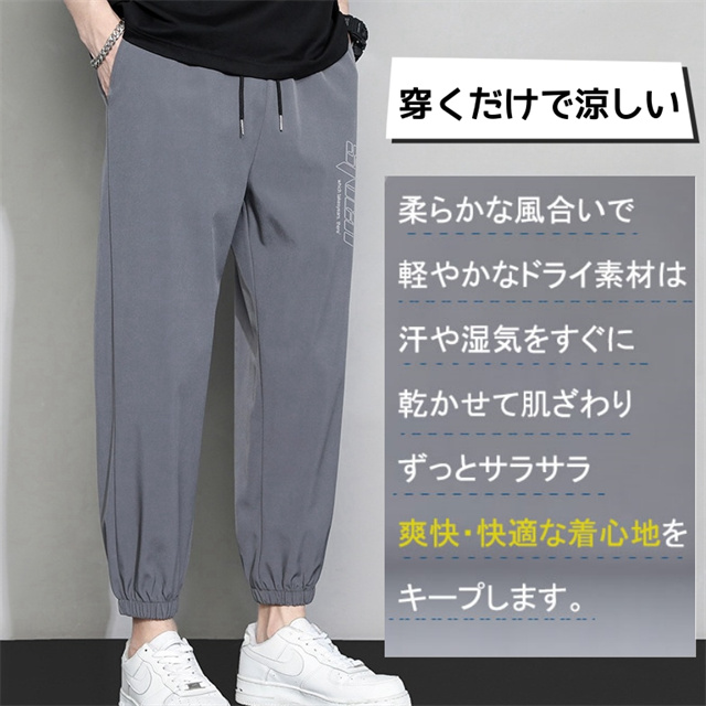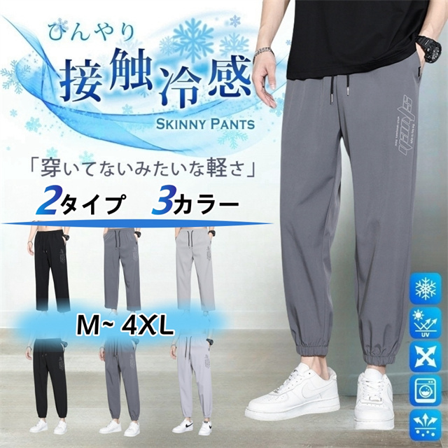 接触冷感 メンズ パンツ 夏 ストレッチ ゆったり 涼しい ボトムス 清涼 涼感 超伸縮 レギパン 薄手 イージーパンツ ズボン エアパンツ 超軽量
