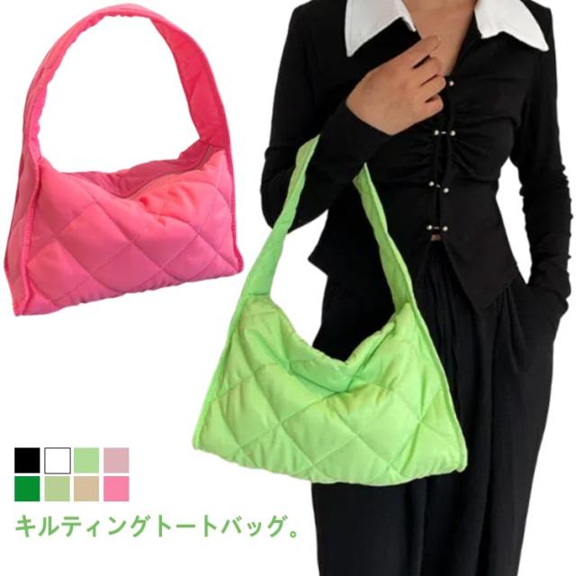 キルティングトートバッグ キルティングバッグ キルティング 女性 菱形格子 ファスナー かわいい 肩かけ 肩掛け トートバッグ 無地 レディースバッグ 多収納 小さめ おしゃれ 通勤 大容量 キルティングバッグ 軽い きれいめ カジュアル シンプル