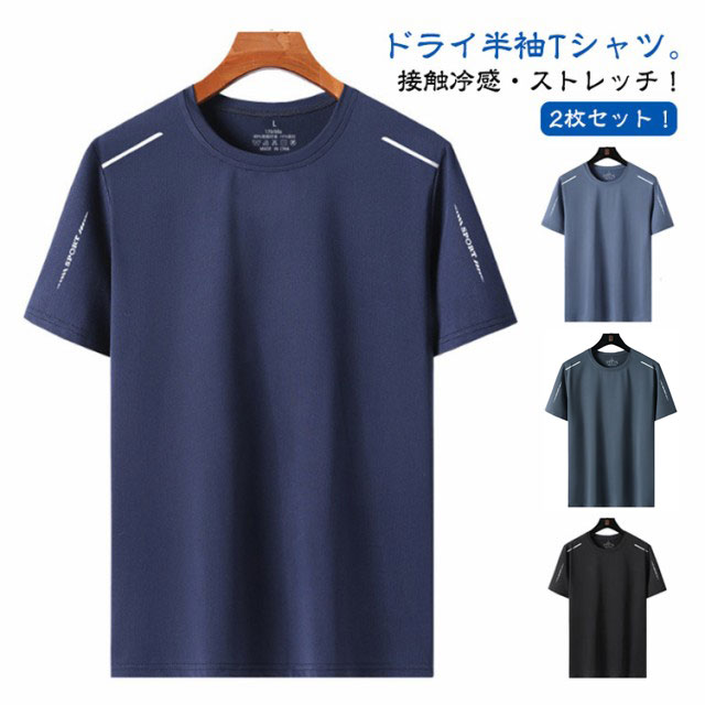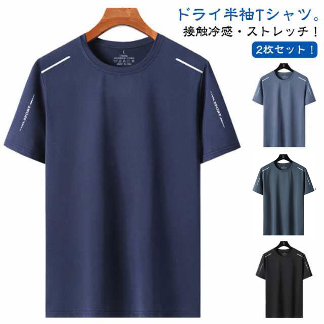 tシャツ 半袖 接触冷感 クルーネック 2枚セット! インナーウエア Tシャツ 吸汗速乾 メッシュ ゴルフ ストレッチ 夏用 2枚セット! 涼しい 作業着 ドライ 春 夏 秋 ランニング 通気性 スポーツウェア ルームウェア インナー 肌着 下着 大きいサイズ カジュアル