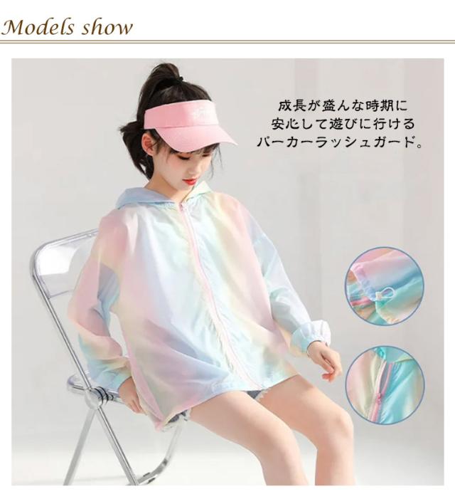 ラッシュガード キッズ 長袖 パーカー 子供用 UVカット 薄手 ラッシュガード ラッシュパーカー 女の子 虫よけ フード付き uvパーカー お洒落 速乾 uvカット ジュニア 日焼け予防 冷房対策 可愛い カジュアル おしゃれ