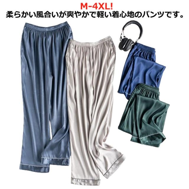 ルームウェア パンツ 春 4XL 夏 薄手 ボトムス 寝巻き 外出 パジャマ スウェット ウエストゴム 夏用 シルク カジュアル スポーツ 部屋着 薄い 涼しい 旅行 パンツ ロングパンツ リラックス メンズ 入院 着替え L XL 2XL 3XL ゆったり