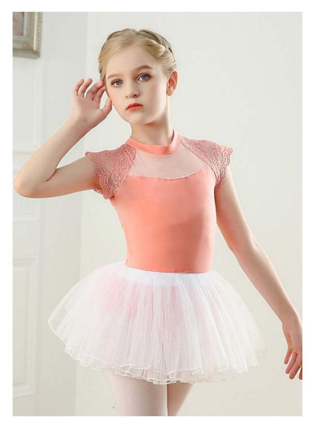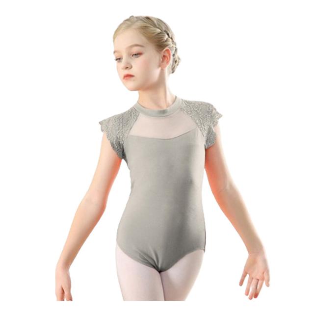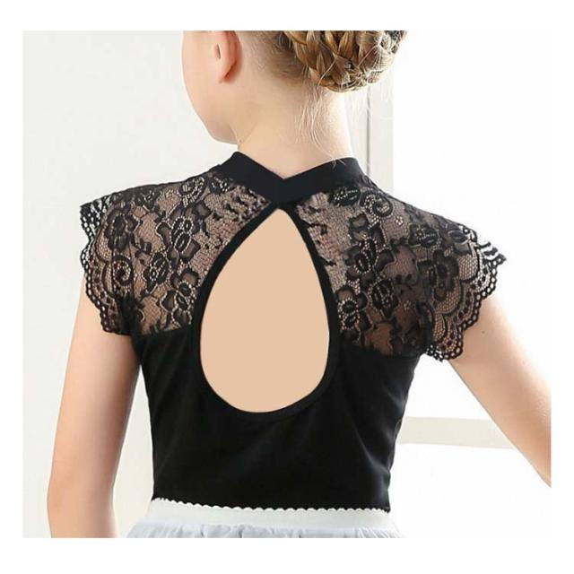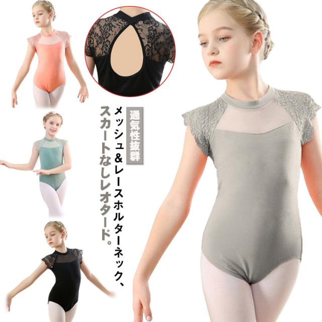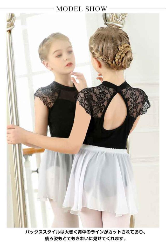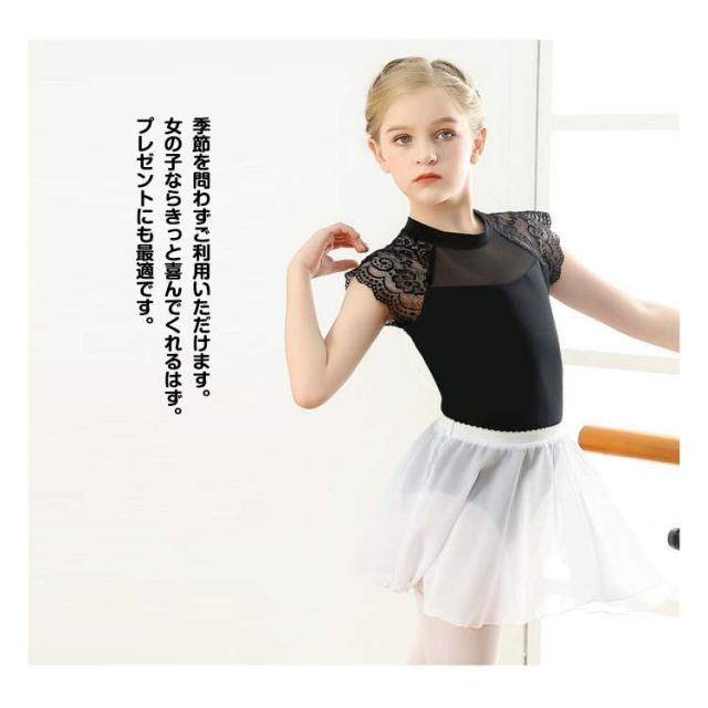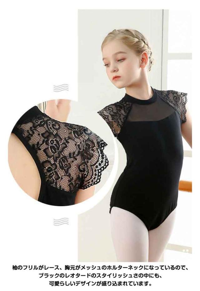 ダンス服 スカートなし 子ども バレエ 子供 ジュニア用 バレエレオタード 練習用 キッズ フリル 黒 レース柄 ブラック バレエ練習着 体操着 バレエウェア