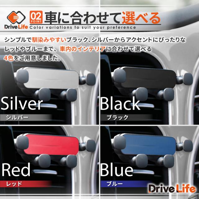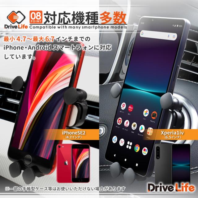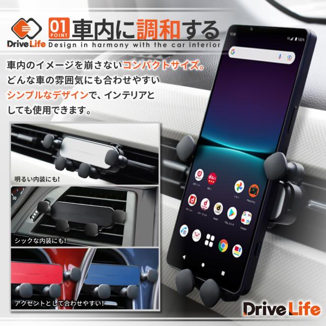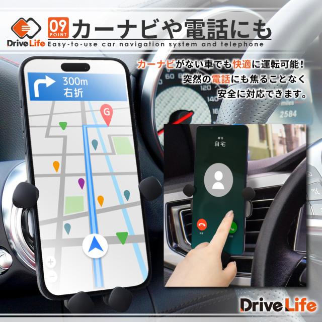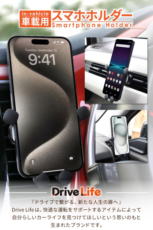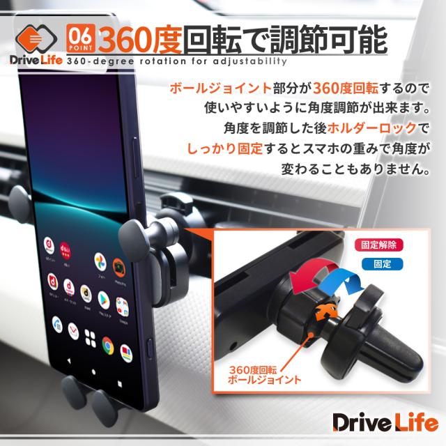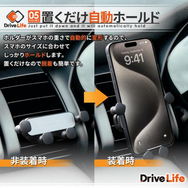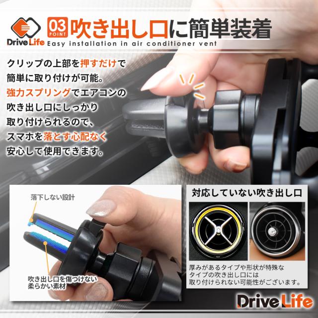 DriveLife ドライブライフ 車載スマホホルダー iphone対応 android対応 スマホホルダー 車載 重力式 車載ホルダー 車用 スタンド スマホ車載ホルダー 吹き出し口 スマホ ホルダー カー用品 日本語説明書付き 車 片手操作 脱着簡単 滑り止め スマホスタンド ブラック