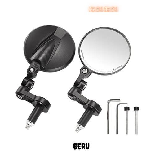 KEMIMOTO バーエンドミラー バイク 左右セット バイクミラー 丸型 車検対応 CNCアルミ製 可倒式 軽量 オートバイミラー 汎用ミラー 角度