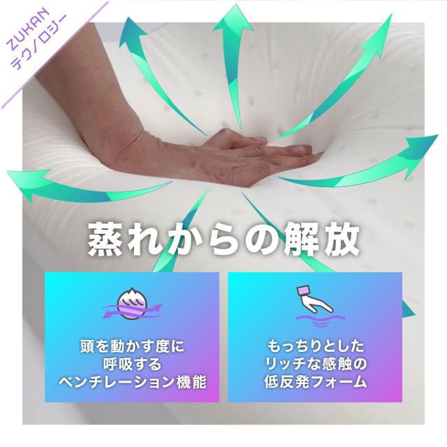 枕に溜まった熱を就寝中に放熱し、枕のムレを軽減