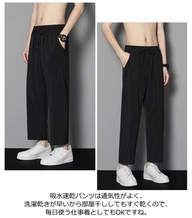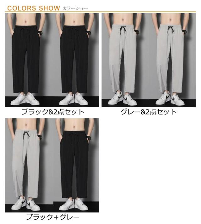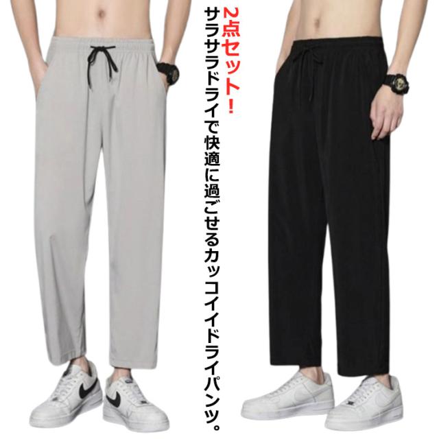 2点セット ワイドパンツ チノパン パンツ 夏 長ズボン 夏服 接触冷感 テーパード ジャージパンツ ストレッチ 2点セット アイスシルク 涼感 吸水速乾 ゴルフウェア メンズ 無地 サマーパンツ 夏用 ルームパンツ 涼しい 薄手 動きやすい 涼しい