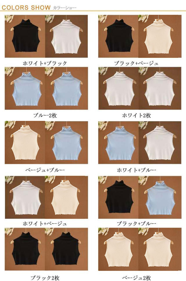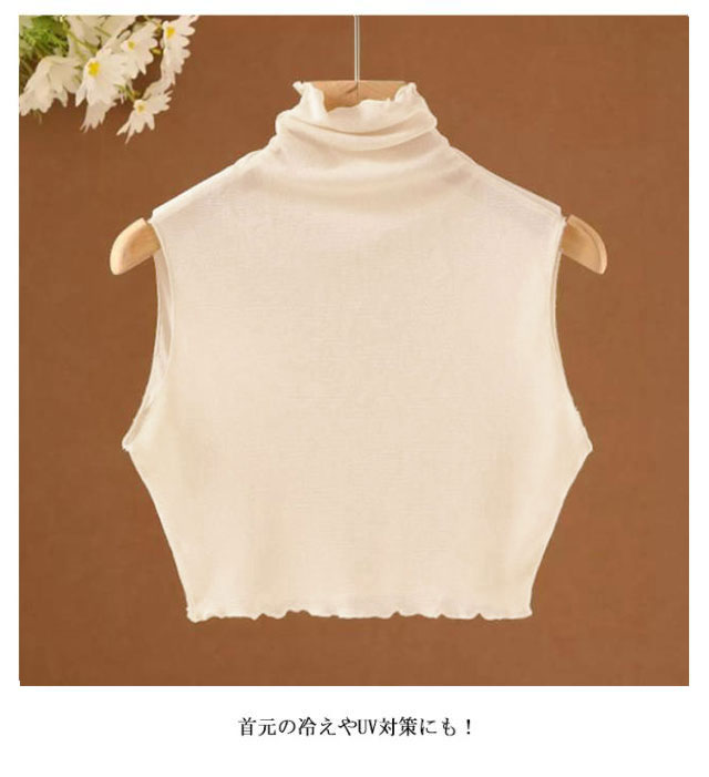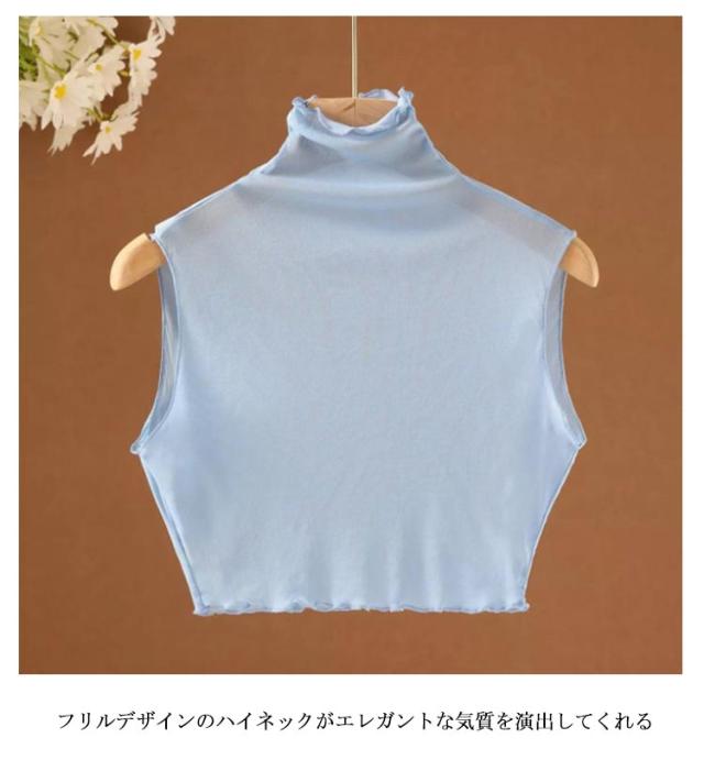 【2枚セット】付け襟 レディース ハイネック 紫外線対策 付け衿 フリル レイヤード つけえり シアー タンクトップ メッシュ メロー 春夏用 つけ襟 薄手 シースルー 重ね着 ノースリーブ トップス インナー おしゃれ ゴルフ 日焼け防止 きれいめ