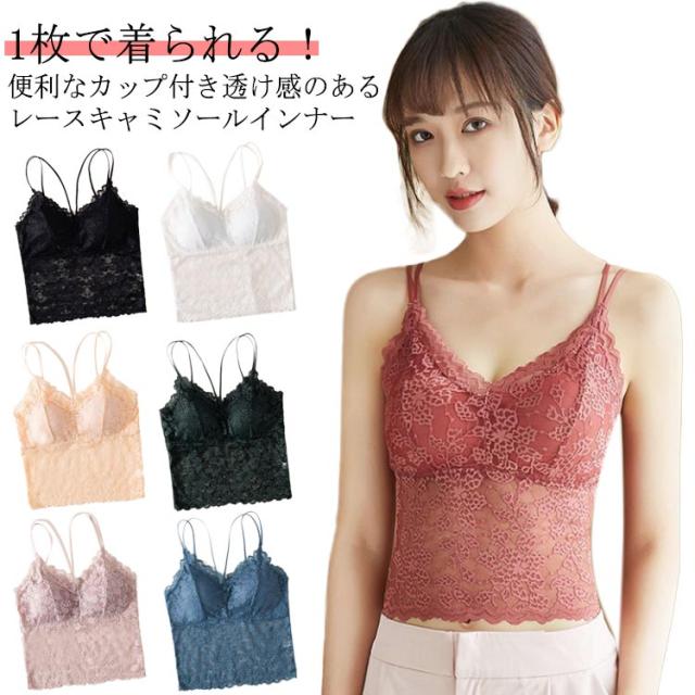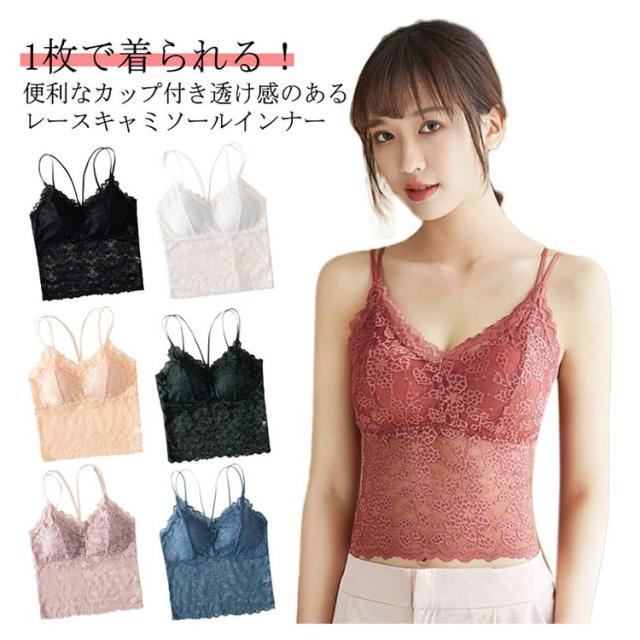 送料無料 キャミソール ブラトップ カップ付き レースキャミソール レース ショート 透け感 揺れない ブラキャミ 盛れる バックオープン ダブルストラップ 華奢紐 キャミ ノンワイヤー アンダーゴムなし ストレッチ インナー レディース おしゃれ 下着