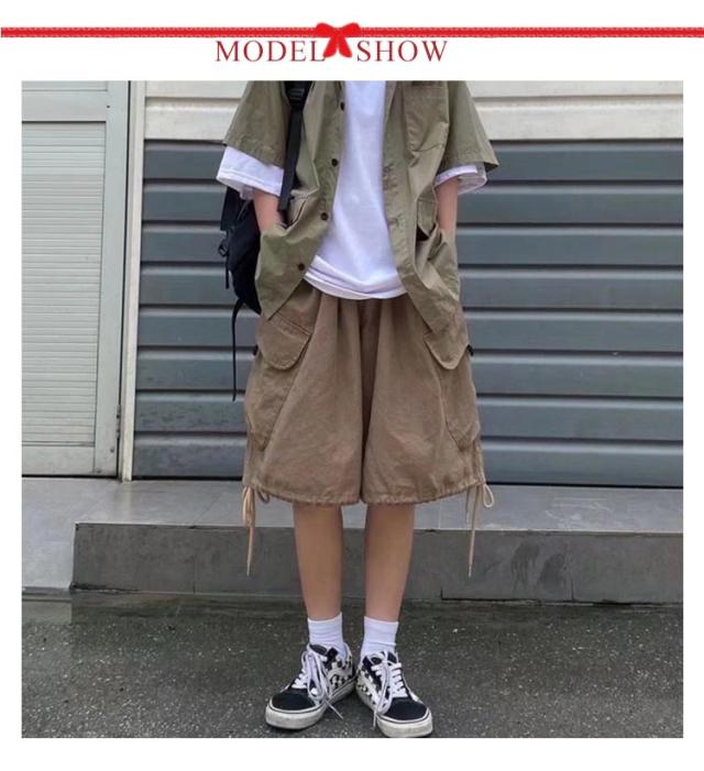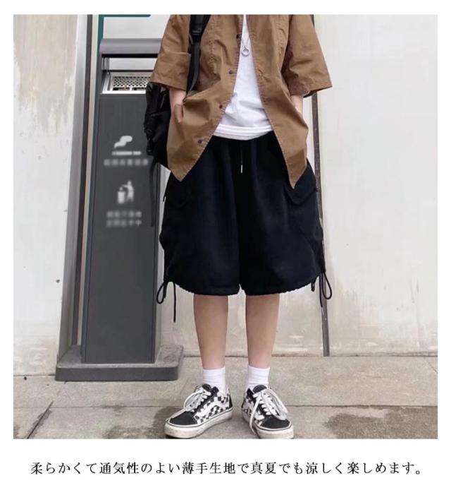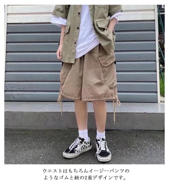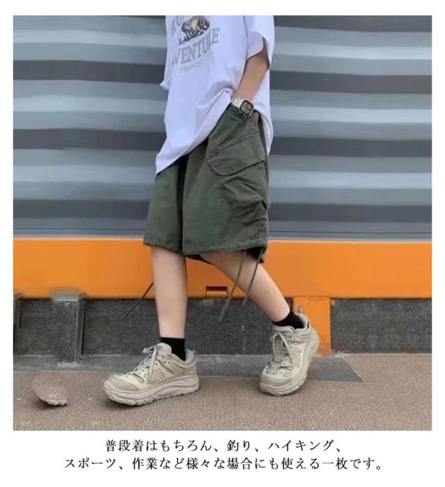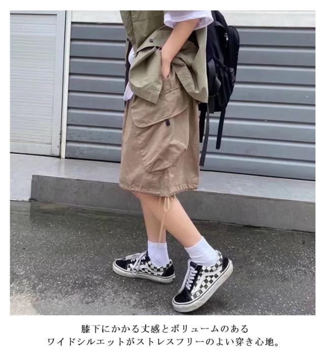 膝下丈 パンツ ワークパンツ カーゴショーツ 五分丈 カーゴパンツ ハーフパンツ ゆったり ワイドパンツ ショートパンツ カーゴショーツ ポケット付き 薄手 夏