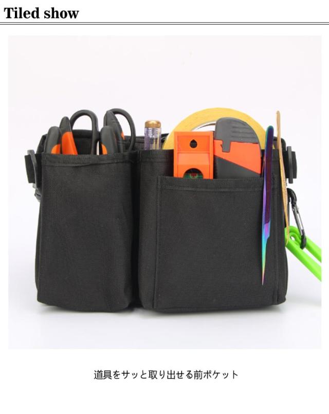 | ・道具をサッと取り出せる前ポケット ・たっぷり入るメインポケット大容量 ・ウエストベルト調整可能 ・防水加工 ・ダブルジップにより開け閉め簡単 | |