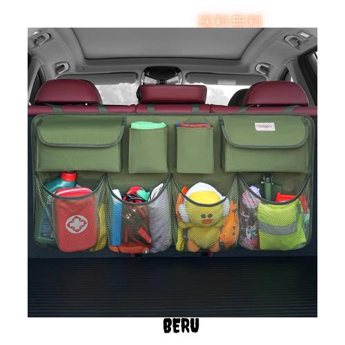 ?【トランクを整理整頓・省スペース設計】車の後部座席に取り付けるだけ!散らかりがちな車のトランク内をすっきり整理整頓できる車用荷物収納ポケットです!豊富なポケットで収納力バツグン☆車内空間を有効活用できます☆子供を乗せたり、友達を乗せたりするのに意外と荷物の置き場所が少ない場合、これがあれば乗車時の利便性アップ!軽自動車、SUV、JEEP、MPV、?ANなど一切の取り付け可能な車両にもピッタリ!夏休みに入り長時間ドライブや年末の帰省等時に非常に役立っています。