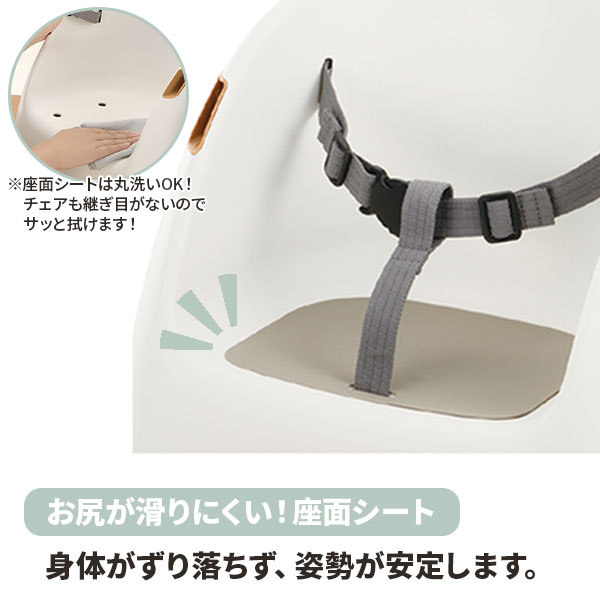 滑りにくい座面座面シートでズリ落ちを防止、姿勢が崩れることなく安定して座ることができます。