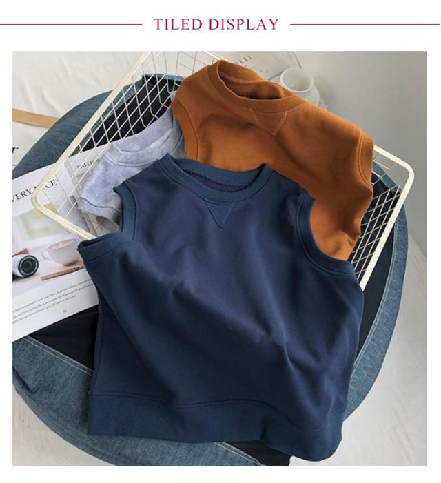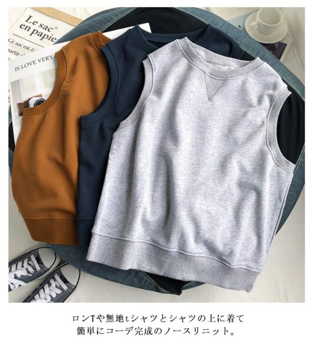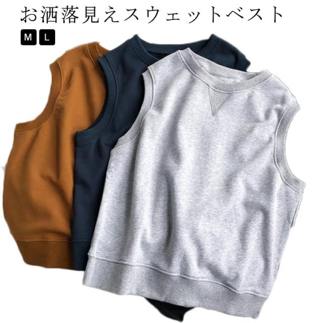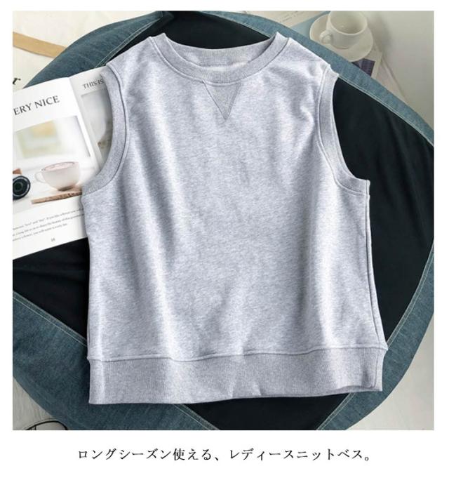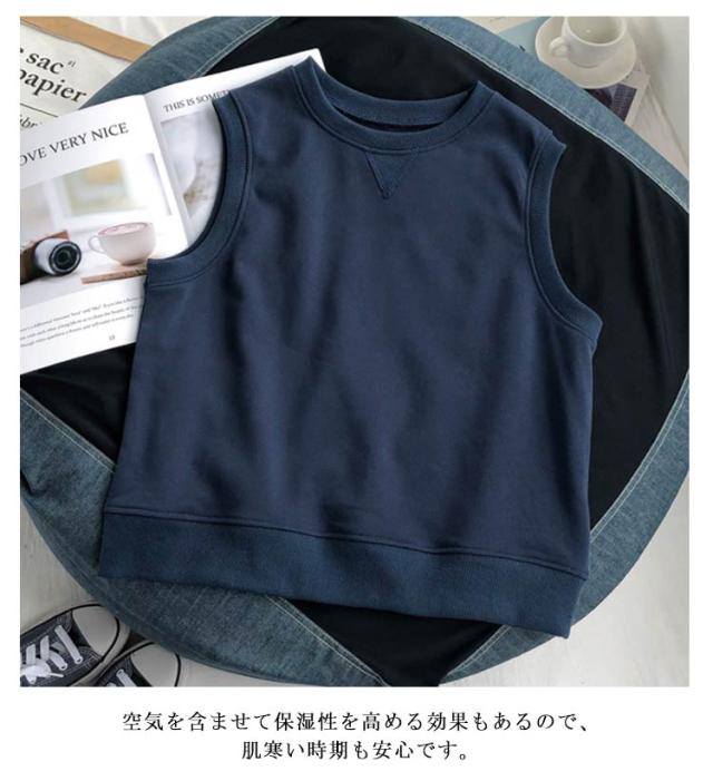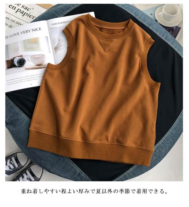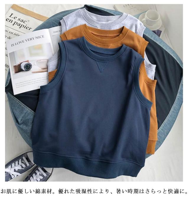 コットン スウェット ベスト レディース 春夏 カットソーベスト ジレ スウェットベスト サマー ベスト チョッキ プルオーバー 丸首 クルーネック おしゃれ 重ね着 レイヤード ノースリーブ タンクトップ クルーベスト セーター