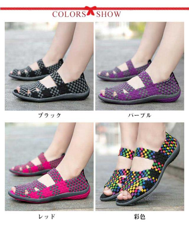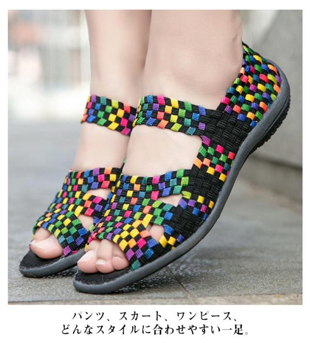 手編みサンダル サンダル レディース ゴムストラップ シューズ 夏 痛くない 歩きやすい 履きやすい 滑り止め 低反発 通気性 可愛い ち母の日 ギフト カラフル 大きサイズ
