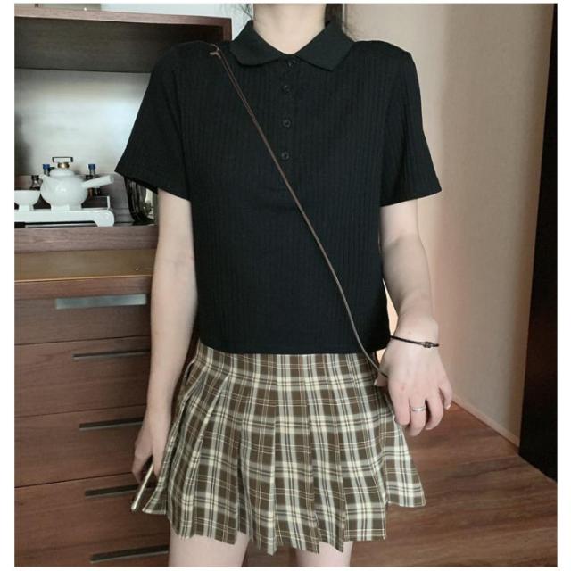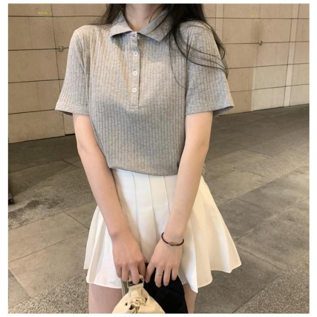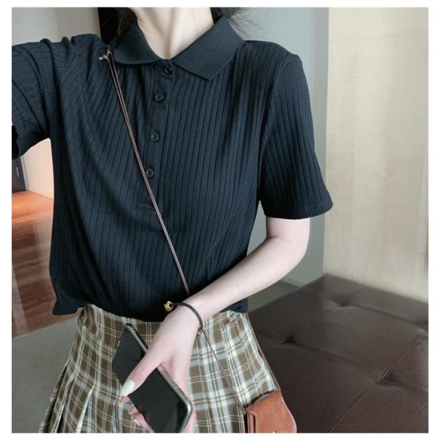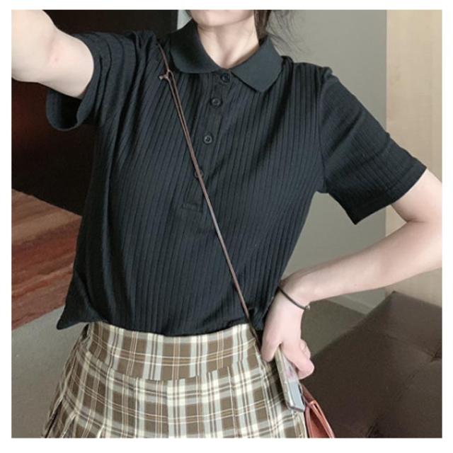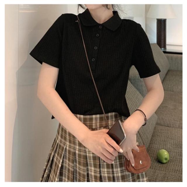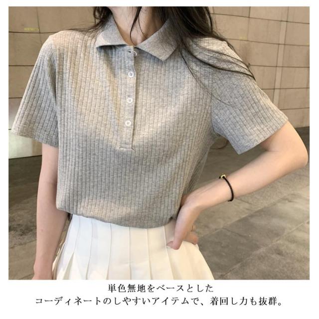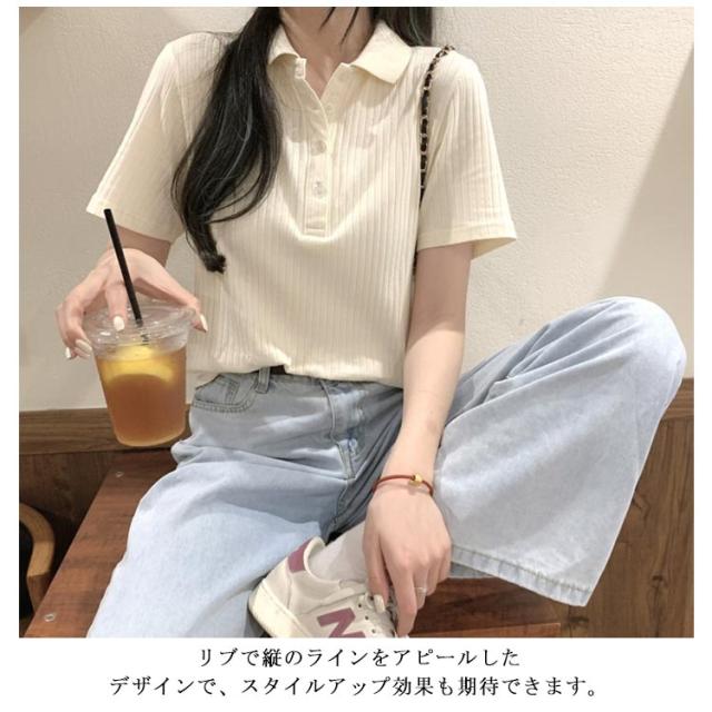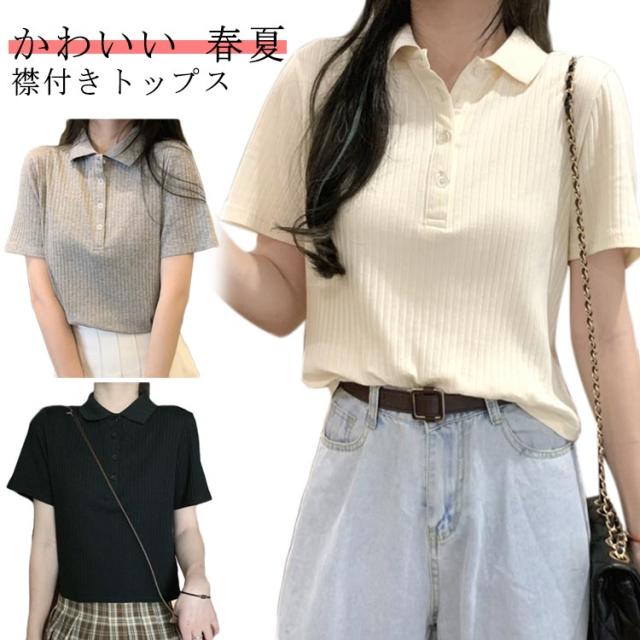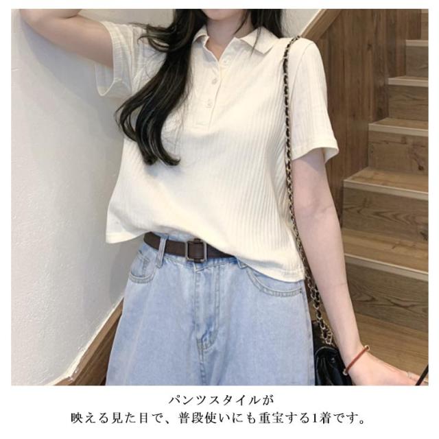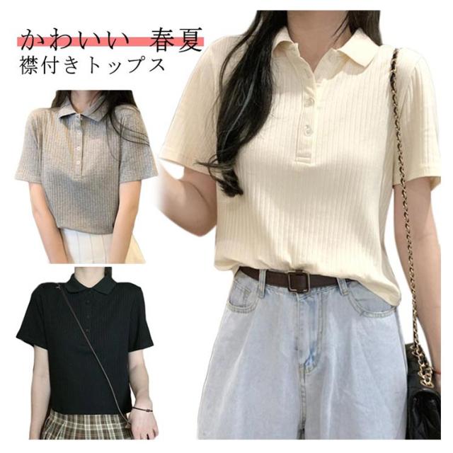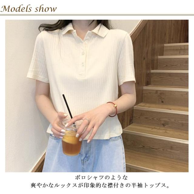 レディース ポロシャツ ショート丈 半袖 Tシャツ 襟付きトップス 春 夏 半袖 カットソー 短丈 リブ カジュアル 女の子 韓国ファッション 無地 おしゃれ かわいい シンプル ショート丈トップス 着回し