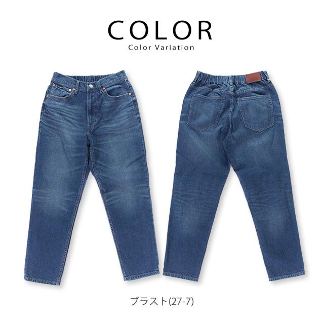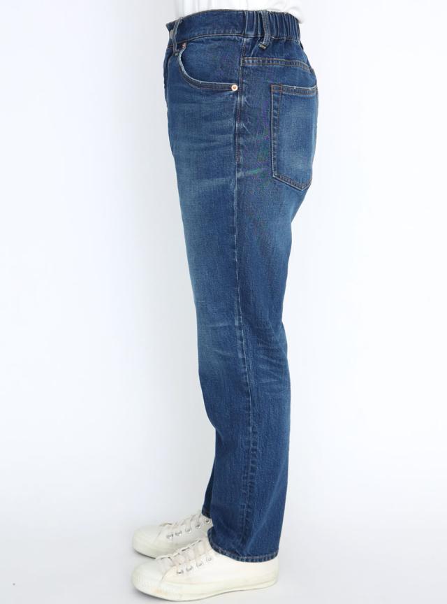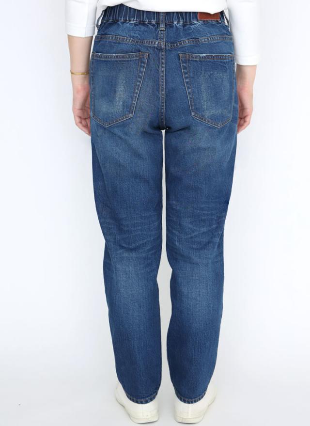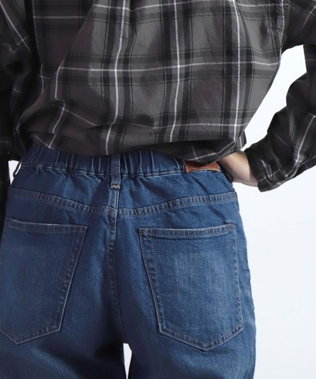 バックウエストがゴム仕様ででイージーな穿き心地のテーパードのイージーデニムパンツ。
