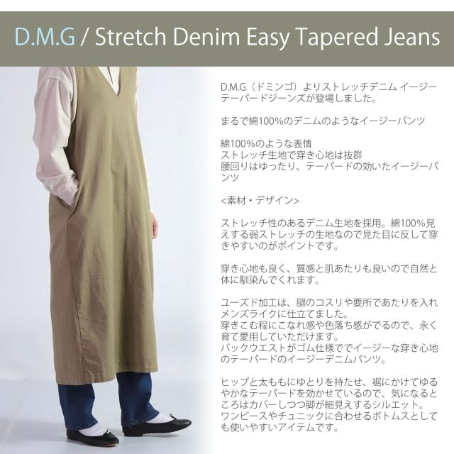 【 まるで綿100% 】 ストレッチジーンズ ドミンゴ DMG D.M.G ストレッチデニム イージーテーパード ジーンズ ( 14-0258C ) ストレッチデニム ロングパンツ ボトムス ウエストゴム 穿きやすい 動きやすい レディース ディーエムジー おしゃれ アーベン 普段使い